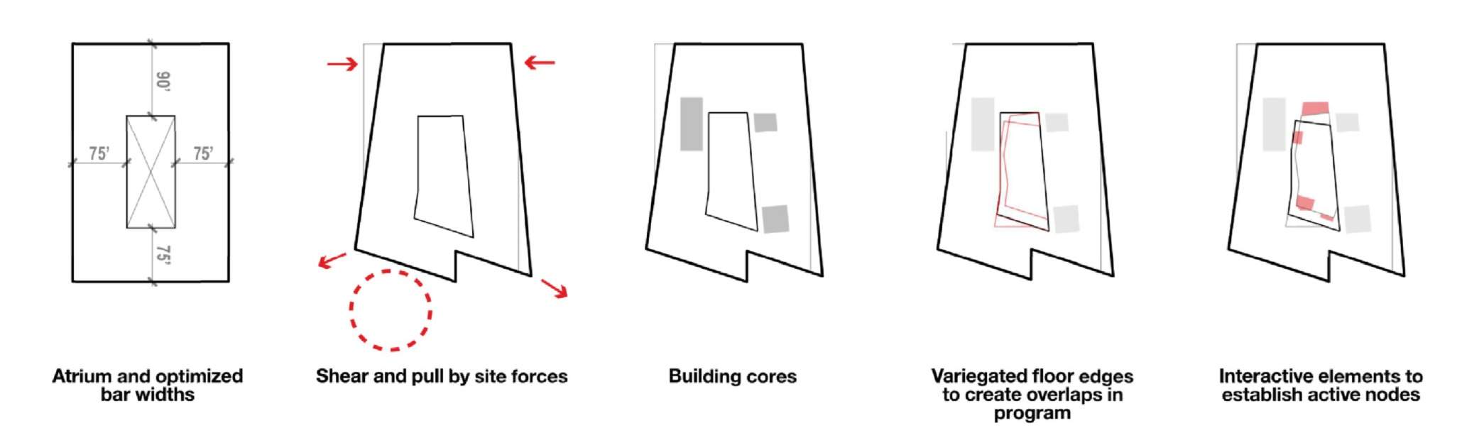 The shearing of planes, extrusion of volumes and uplifting of forms were inspired the hyper-geology of Colorado. The shifts in the massing were aligned with the varied program and site forces.